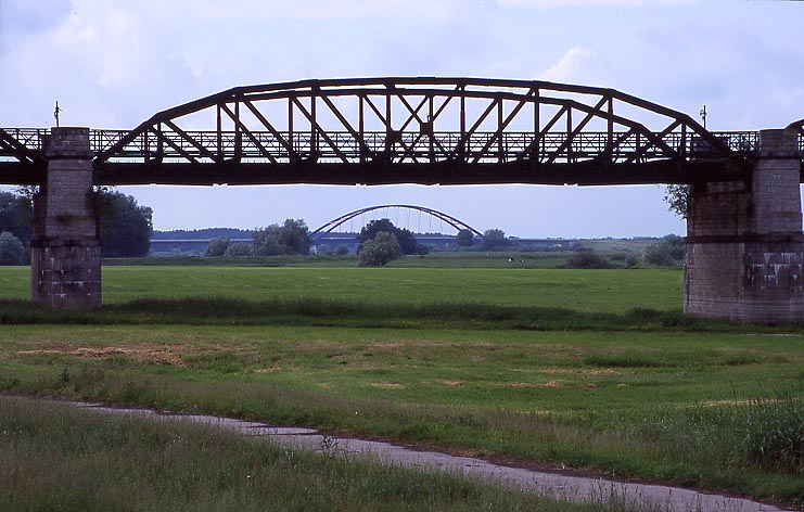 Die alte Eisenbahnbrücke der ehemaligen Eisenbahnlinie Wittenberge-Lüneburg und die im Dezember 1992 (Baubeginn August 1991) fertiggestellte neue Straßenbrücke reizen immer zum Fotografieren.