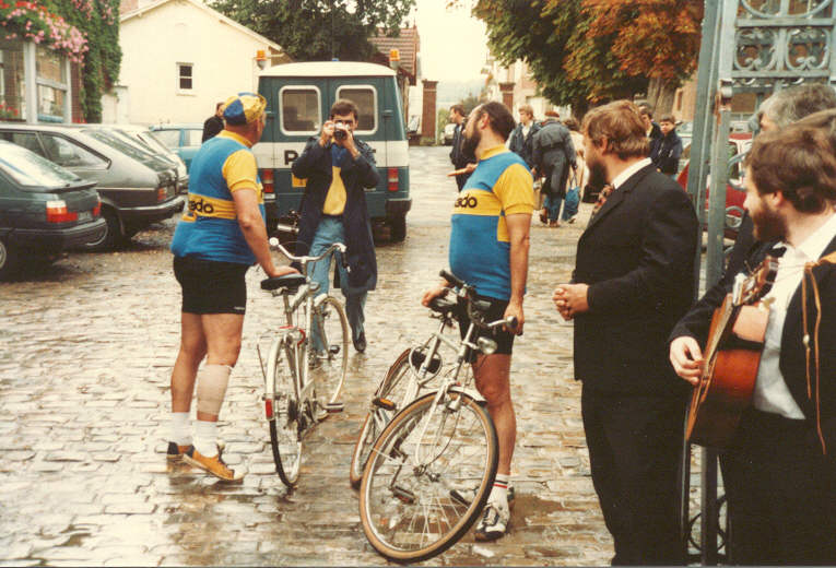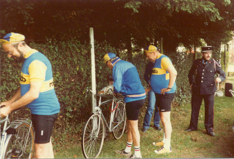 Feuerwehr, Polizei und Vertreter der beiden Partnerschaftsvereine treffen ein. Es wird allmählich Zeit, daß wir uns auf die Sättel schwingen.