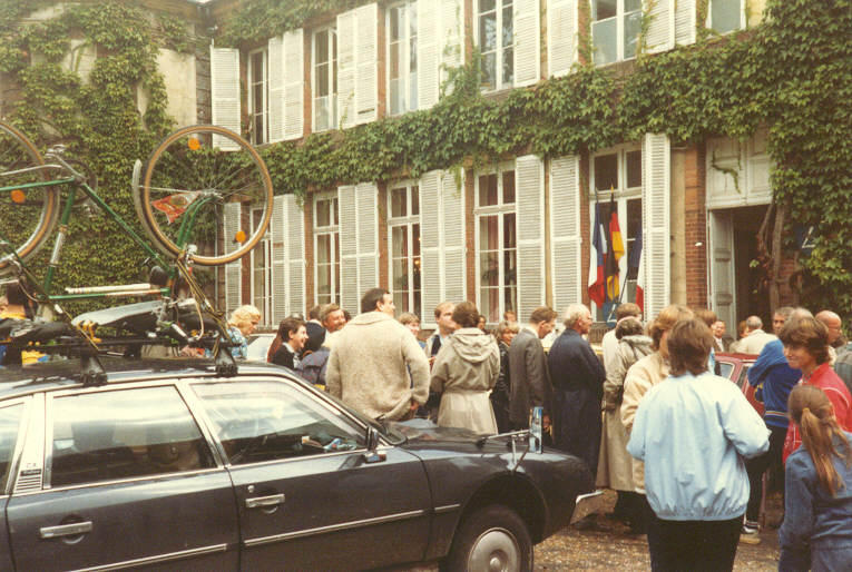 Abfahrt um 9.00 Uhr vom Campingplatz Bernieres-sur-Seine. Wir fahren an der Seine entlang, bis wir nach 10 km das Tal verlassen und die Steigung nach Heudebouville bewältigen müssen. Kurz vor der Steigung bekommt Hubert an seinem Fahrrad einen platten Hinterreifen. Beim Hinaufschieben merken Klaus und Hartmut, daß auch an ihren Fahrrädern die Hinterreifen platt sind.